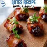 For parties, I like to thread several bacon-wrapped dates onto pretty skewers or cocktail picks for an elegant look. You can also arrange them on a slate or wooden board surrounded by fresh herbs and small bowls of honey or spicy mustard for dipping. It’s super festive and makes guests feel special.