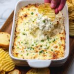 - Garnish and Serve: Remove from the oven, top with additional green onions or chives, and serve the dip warm with bread, crackers, chips, or vegetables for dipping.