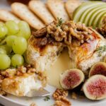 - Rest and serve: Remove the baked brie from the oven and let it rest for 5 minutes before serving. Garnish with optional rosemary or thyme sprigs and serve warm with fruit, crackers, or crostini.