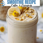 Pour your smoothie into a glass or mason jar—and if you’re feeling fancy, sprinkle some dried chamomile leaves on top. Not only does it look pretty, but it enhances the floral aroma with every sip. Now, sit back, sip, and enjoy that calming deliciousness!