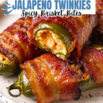 Texas Twinkies are a flavorful, spicy appetizer featuring large jalapeños stuffed with a savory mixture of cream cheese, cheddar cheese, and tender leftover beef brisket, all wrapped in crispy bacon and finished with a tangy BBQ glaze. Perfect for parties or game day snacks.