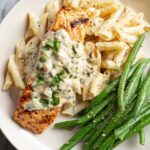 Boursin Salmon is a creamy, flavorful dish featuring pan-seared salmon topped with a rich Boursin cheese and herb sauce. This recipe combines tender salmon with garlic, onions, fresh lemon juice, and herbs to create a delicious main course perfect for a quick and elegant dinner.