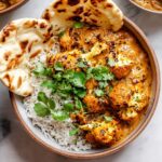 Butter Cauliflower is a flavorful Indian-inspired dish featuring tender cauliflower florets cooked in a rich, spiced tomato and cream sauce. Perfectly seasoned with turmeric, garam masala, and other aromatic spices, this dish is served over basmati rice and garnished with fresh cilantro and Greek yogurt for a creamy finish.