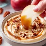 Transfer your dip to a pretty serving bowl. If you’re feeling fancy, drizzle a little extra caramel over the top and sprinkle some chopped pecans for crunch. Now the fun part: grab apple slices, grapes, strawberries, graham crackers, or gingersnaps and start dipping!