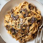 This Caramelized Leek and Mushroom Gruyere Pasta is a luxurious and flavorful dish featuring golden caramelized leeks, savory browned oyster mushrooms, and a rich cream sauce infused with sherry, garlic, sage, and tangy balsamic vinegar. Tossed with fettuccine and melted Gruyere cheese, then topped with toasted pine nuts for a delightful crunch, this recipe offers a comforting yet elegant pasta experience perfect for a special dinner or weekend treat.