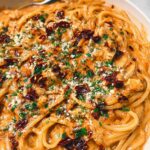 A flavorful Caramelized Onion Pasta with a spicy chili oil twist, combining rich butter-sautéed onions, a creamy sauce with parmesan, and a hint of heat from chili crisp to create a comforting yet exciting meal perfect for dinner.