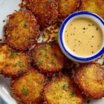 Crispy cheese-crusted Yukon Gold potatoes baked to golden perfection, served with a smoky roasted garlic chipotle aioli for a delicious and indulgent side dish or appetizer.
