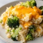 This Cheesy Broccoli Rice Vegan Casserole is a delicious and comforting plant-based dish featuring tender broccoli, vegan chicken, creamy sauce, and melty vegan cheddar cheese all cooked together in a fragrant rice base. Perfect for a family-friendly dinner or meal prep.