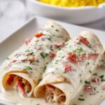 - Arrange in casserole dish: Place the rolled burritos side by side in a 9×13-inch casserole dish. Pour the warm queso sauce evenly over the top of the burritos.