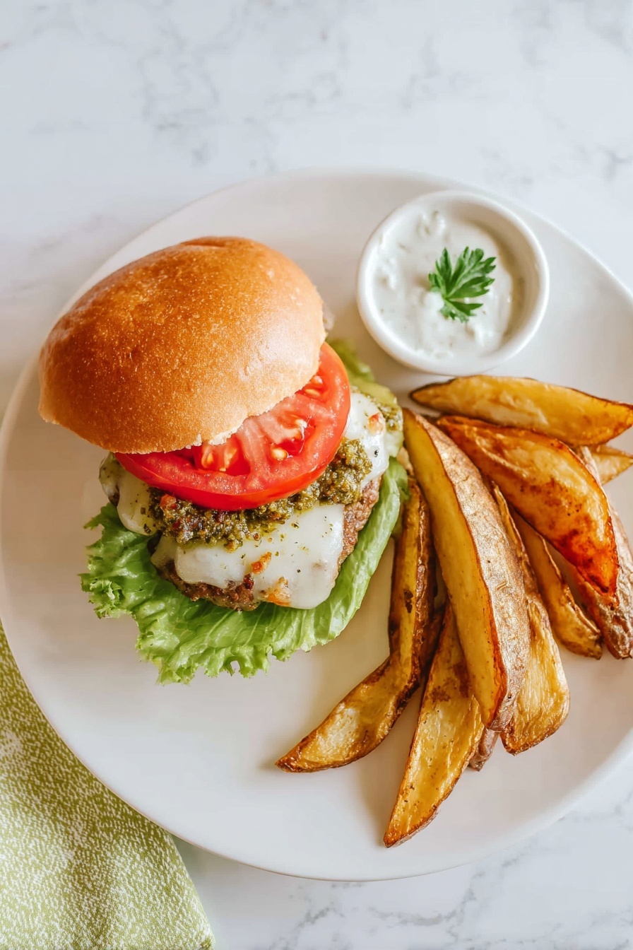 I usually top my burgers with fresh basil leaves, ripe tomato slices, and a generous spoonful of pesto — it highlights the Italian-inspired flavors perfectly. Sometimes, I add a handful of arugula for a peppery crunch that balances the creamy mozzarella. It’s simple but feels so gourmet.