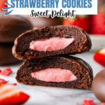 Delight in these luscious Chocolate Covered Strawberry Cookies featuring a rich chocolate cookie exterior with a creamy freeze-dried strawberry butter filling, topped with a smooth chocolate ganache. Perfect for special occasions or an indulgent treat.