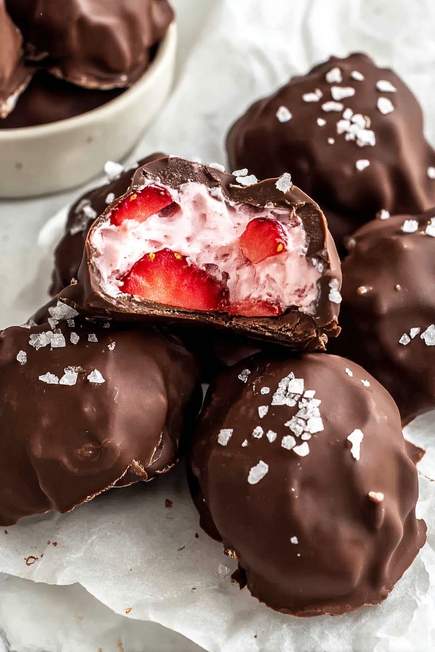 I love to sprinkle a tiny pinch of flaky sea salt or even crushed freeze-dried strawberries on top right after dipping — it adds a pop of texture and a flavor boost. A little chopped fresh mint makes them feel extra special, too.