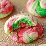 These Christmas Cheesecake Cookies are a festive treat combining creamy cheesecake flavor with a soft, buttery sugar cookie. Marbled with red and green hues and a hint of peppermint, they make a perfect holiday dessert to share and enjoy.