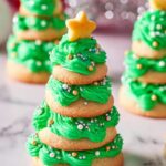 Delight in the festive spirit with these Stacked Christmas Tree Cookies featuring buttery, soft sugar cookies layered with vibrant green buttercream frosting and festive sprinkles. Perfect for holiday parties and gifting, these charming cookie trees are as fun to make as they are to eat.