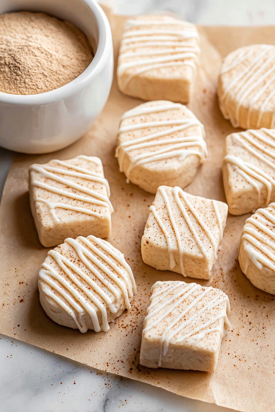 - Decorate the Fudge: Drizzle the prepared icing over the cut fudge pieces. Immediately sprinkle with the remaining 1 teaspoon cinnamon sugar. Place the fudge back in the refrigerator for about 15 minutes until the drizzle hardens.