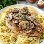 Classic Chicken Marsala goes beautifully over spaghetti—or you can swap for creamy mashed potatoes, garlic buttered noodles, or even polenta for a comforting twist. Roasted or steamed green veggies like asparagus or broccoli also pair perfectly to add a little freshness.