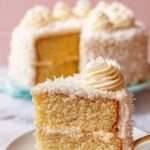 - Decorate with coconut: Gently press 1 to 2 cups of sweetened flaked coconut onto the sides and top of the cake. Optionally, pulse the coconut in a food processor for shorter strands. Pipe decorative frosting around the edges if desired.