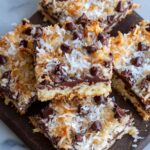 Deliciously rich and chewy Magic Coconut Bars featuring a buttery graham cracker crust topped with a gooey coconut, chocolate, walnut, and condensed milk mixture, baked to perfection for a delightful treat perfect for any occasion.