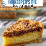 Colonial Innkeeper’s Pie is a rich, layered dessert featuring a buttery pie crust base, a moist vanilla cake layer studded with pecans, and a decadent melted chocolate topping. This classic recipe combines comforting flavors and textures, perfect for serving with a dollop of whipped cream.