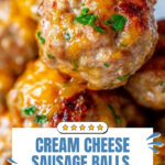 Delicious and easy Cream Cheese Sausage Balls made with hot pork sausage, cream cheese, Bisquick baking mix, and shredded cheddar cheese. Perfect for parties, snacks, or appetizers, these savory bites are baked to golden perfection and offer a cheesy, flavorful treat.