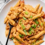 A flavorful and creamy one pot Cajun chicken pasta recipe featuring tender chicken seasoned with homemade Cajun spices, simmered with penne pasta, fire roasted tomatoes, and cream cheese for a rich, comforting meal.