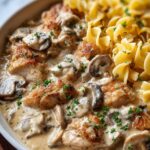 A creamy and flavorful Chicken Mushroom Stroganoff made with tender chicken breasts, sautéed cremini mushrooms, onions, and a rich sour cream sauce seasoned with Dijon mustard and Worcestershire sauce. Perfect for a comforting weeknight dinner.