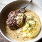 Since the sauce is creamy and rich, I love pairing these hamburger steaks with buttery mashed potatoes or creamy polenta to soak up every last bit. Roasted green beans or a simple arugula salad with lemon vinaigrette cut through the richness nicely, balancing the plate.