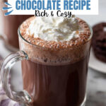 A rich and creamy homemade hot chocolate recipe made with whole milk, cocoa powder, and bittersweet chocolate, perfect for a cozy treat topped with homemade whipped cream.