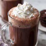 A rich and creamy homemade hot chocolate recipe made with whole milk, cocoa powder, and bittersweet chocolate, perfect for a cozy treat topped with homemade whipped cream.
