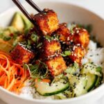 - Serve: Serve crispy gochujang tofu with rice, fresh vegetables such as cucumber, carrot, avocado, sesame seeds, or steamed broccoli for a complete meal.