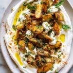 Crispy Oregano Roasted Potatoes with Creamy Feta Sauce are a flavorful side dish featuring tender, golden potatoes roasted with fresh oregano and garlic, paired with a tangy and creamy feta sauce. Finished with a vibrant herb oil and sesame seeds, this recipe delivers a perfect balance of crispness, creaminess, and bright herbal notes.