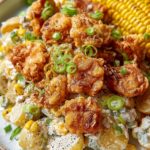 - Garnish and Serve: Garnish the salad with chopped scallions and the reserved crispy potato bits. Serve warm and enjoy this crispy, tangy potato salad.