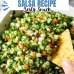 For parties, I like serving this Dill Pickle Salsa Recipe in a hollowed-out cucumber bowl or alongside a charcuterie board featuring cheeses and cured meats. It’s always a conversation starter—and your guests will rave about the unexpected twist.