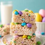 Delightful Easter Rice Krispie Treats combining crispy cereals, melted marshmallows, and festive M&Ms and sprinkles. Perfect for spring celebrations and easy to make with simple ingredients.