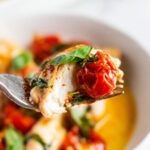 This Chicken Caprese recipe features juicy, pan-seared chicken breasts topped with fresh buffalo mozzarella, sautéed cherry tomatoes, and fragrant basil, finished with a drizzle of balsamic vinegar for a delicious Italian-inspired meal perfect for dinner.