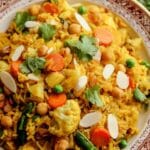 - Serve: Garnish with chopped cilantro and sliced almonds if desired. This biryani pairs wonderfully with vegan raita and naan bread for a complete meal.