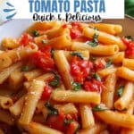 A quick and easy pasta recipe featuring a rich, creamy cherry tomato sauce blistered with garlic and fresh basil, finished with Parmesan cheese for a delicious weeknight meal.