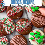 Delicious Christmas Chocolate Covered Oreos are an easy and festive treat perfect for holiday celebrations. Dip Oreos in smooth melted milk chocolate, optionally double-dip with white chocolate, and decorate with colorful Christmas sprinkles and food coloring for a festive touch. These treats are easy to make and keep well for weeks.