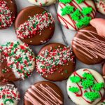 Delicious Christmas Chocolate Covered Oreos are an easy and festive treat perfect for holiday celebrations. Dip Oreos in smooth melted milk chocolate, optionally double-dip with white chocolate, and decorate with colorful Christmas sprinkles and food coloring for a festive touch. These treats are easy to make and keep well for weeks.