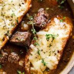 Finally, ladle the luscious short ribs and onion mixture into your bowls. Pop a cheesy toast on top, sprinkle with a bit of cracked black pepper and fresh thyme leaves, and you’re ready to dive in. I usually make a second batch of toasts because they tend to go fast around here!