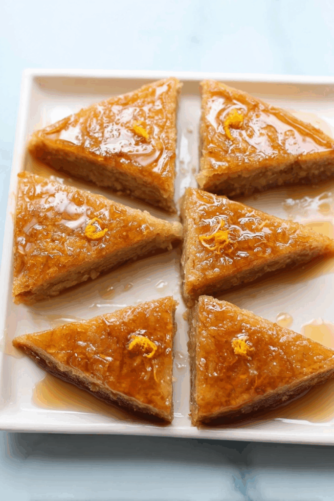 Let the cake cool in the pan for at least 15 minutes. Then cut it into squares, triangles, or diamonds—the traditional Greek shapes are lovely, but you do you. Pour the spiced honey reduction over the cake and watch it soak up the sweet, citrus-spiced magic. You can also serve the reduction on the side to drizzle liberally or sparingly as desired.