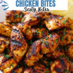 For parties, I sometimes thread the chicken bites onto small skewers or toothpicks for easy grab-and-go finger food. Laying them on a bed of arugula with a drizzle of tzatziki sauce turns this simple dish into an elegant appetizer. Another fun idea is serving it over a Greek yogurt dip bowl surrounded by your favorite veggies for dipping.