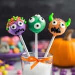 These festive Halloween Cake Pops are easy to make and perfect for spooky celebrations. Featuring colorful candy melts in green, purple, and orange, mini donuts or donut holes, and decorated with candy eyeballs, sprinkles, and black decorating gel, these cake pops bring a fun and delicious treat to any Halloween party.