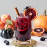 For a Halloween twist, I’ve served this sangria in glass pitchers decorated with faux spider rings around the handle. Using black or orange straws and spooky-themed glasses also adds a fun touch. If you’re hosting kids too, pre-fill small individual jars with fruit and cinnamon sticks for an adorable personal touch everyone will appreciate.