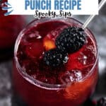 A festive and refreshing Halloween Punch combining grape juice, fruit punch concentrate, and lemon-lime soda, garnished with fresh blackberries and orange slices for a spooky celebration drink.