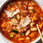 This hearty Minestrone Soup recipe is a flavorful Italian classic packed with vegetables, beans, and pasta simmered in a savory tomato broth. Perfect for a comforting lunch or dinner, it combines fresh vegetables, kidney beans, and elbow macaroni, seasoned with Italian herbs and topped with parmesan cheese for a satisfying meal.