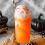 Hocus Pocus Punch is a refreshing and fruity beverage that combines mango peach juice, peach sparkling water, and a generous scoop of rainbow sherbet for a fun and delicious treat. Perfect for parties or a quick, tasty refresher.