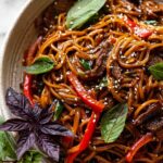 - Finish and serve: Remove from heat, then stir in fresh basil and toasted sesame seeds. Serve immediately, garnished with extra fresh basil if desired.