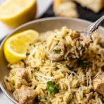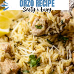 A flavorful and comforting Lemon Chicken and Orzo recipe featuring tender chicken breast cooked with lemon juice, dried basil, and Parmesan cheese, making a creamy and delicious one-pan meal perfect for weeknight dinners.