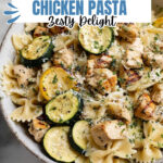 A bright and flavorful Lemon Chicken Pasta featuring tender chicken breasts, fresh zucchini and yellow squash, tossed with mini farfalle pasta in a buttery lemon sauce, finished with freshly grated parmesan and parsley for a delicious weeknight meal.